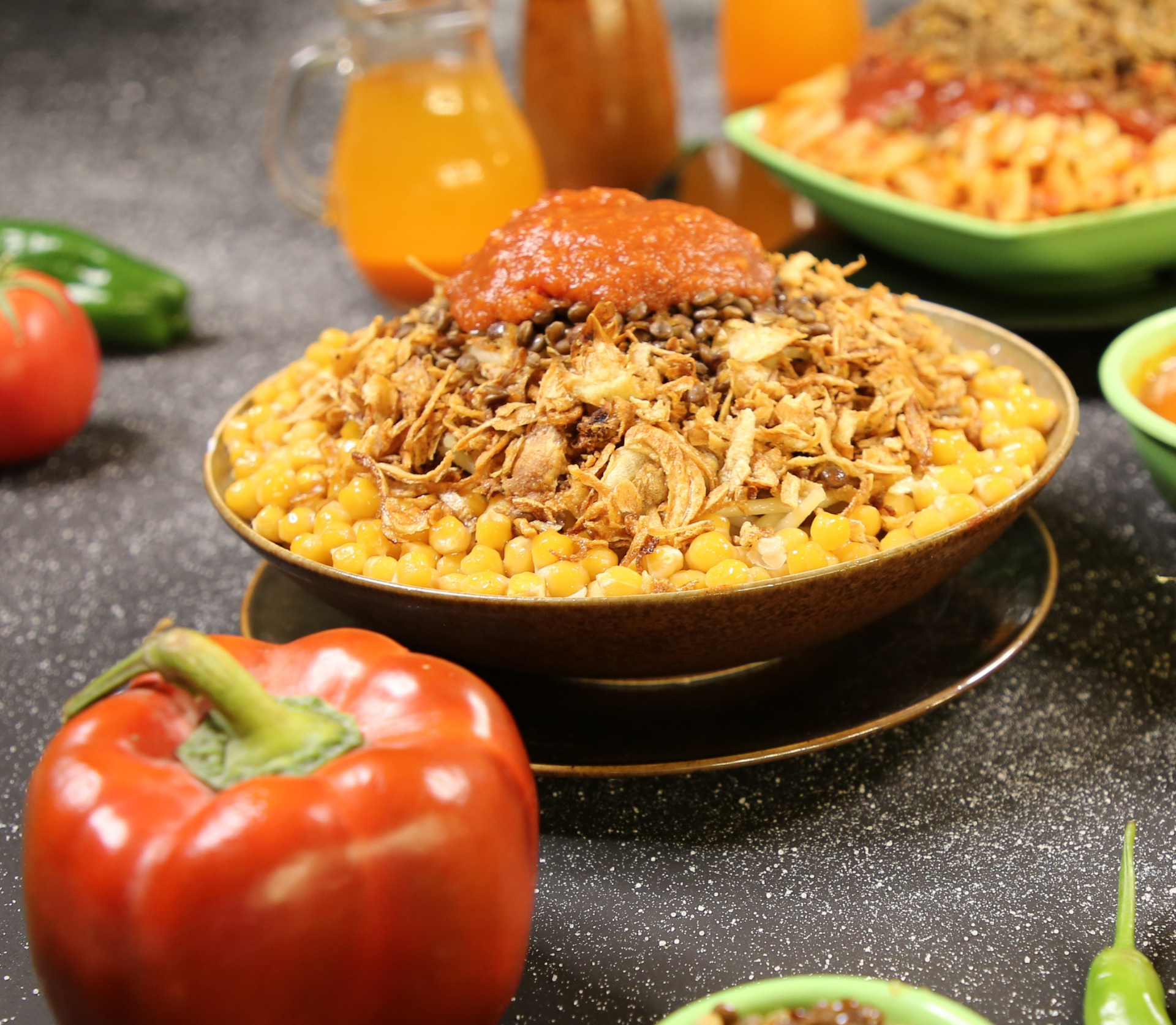 Koşeri’yi toplamak, bir Mısır şefinin sanatsal dokunuşudur. Her katmanı özenle yerleştirerek lezzet ve doku uyumu yaratılır.